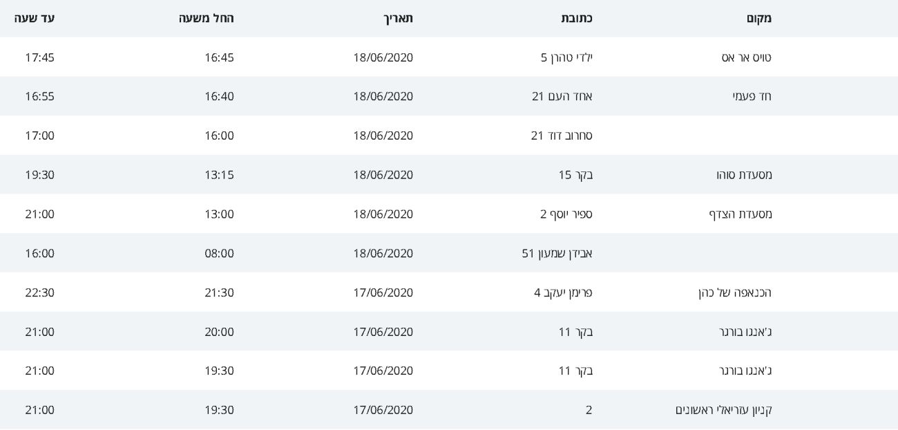כל מי ששהה במקומות שצוינו לעיל בימים ובשעות המפורטים מעלה מתבקש להיכנס לבידוד ביתי לפי הוראות משרד הבריאות ולדווח על כך בטופס המקוון: