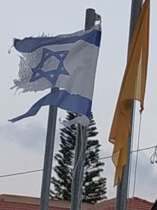 אורחכל הכבוד! לעומת זאת רציתי להפנות את תשומת לבכם לדגל ישראל קרוע מתנופף בראש התורן לצידו של דגל דומה של ראשון לציון .זה נמצא בבית מרכז נוער ברחוב שדרות יעקב .