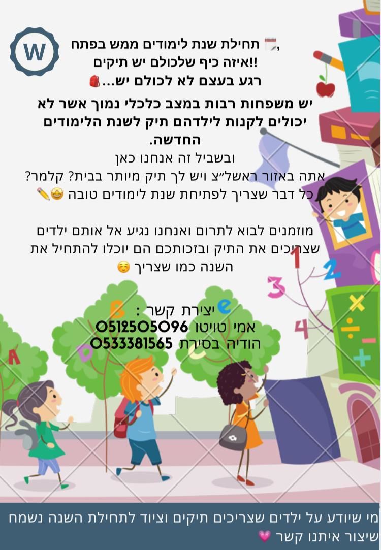 התחלה שווה לתלמידי ראשון! אמי טויטו והודיה בסירת יוצאות במבצע התרמה לתיקים וציוד בית ספר למשפחות נזקקות בעיר; לתרומות ניתן לפנות 0512505096 או 0533381565