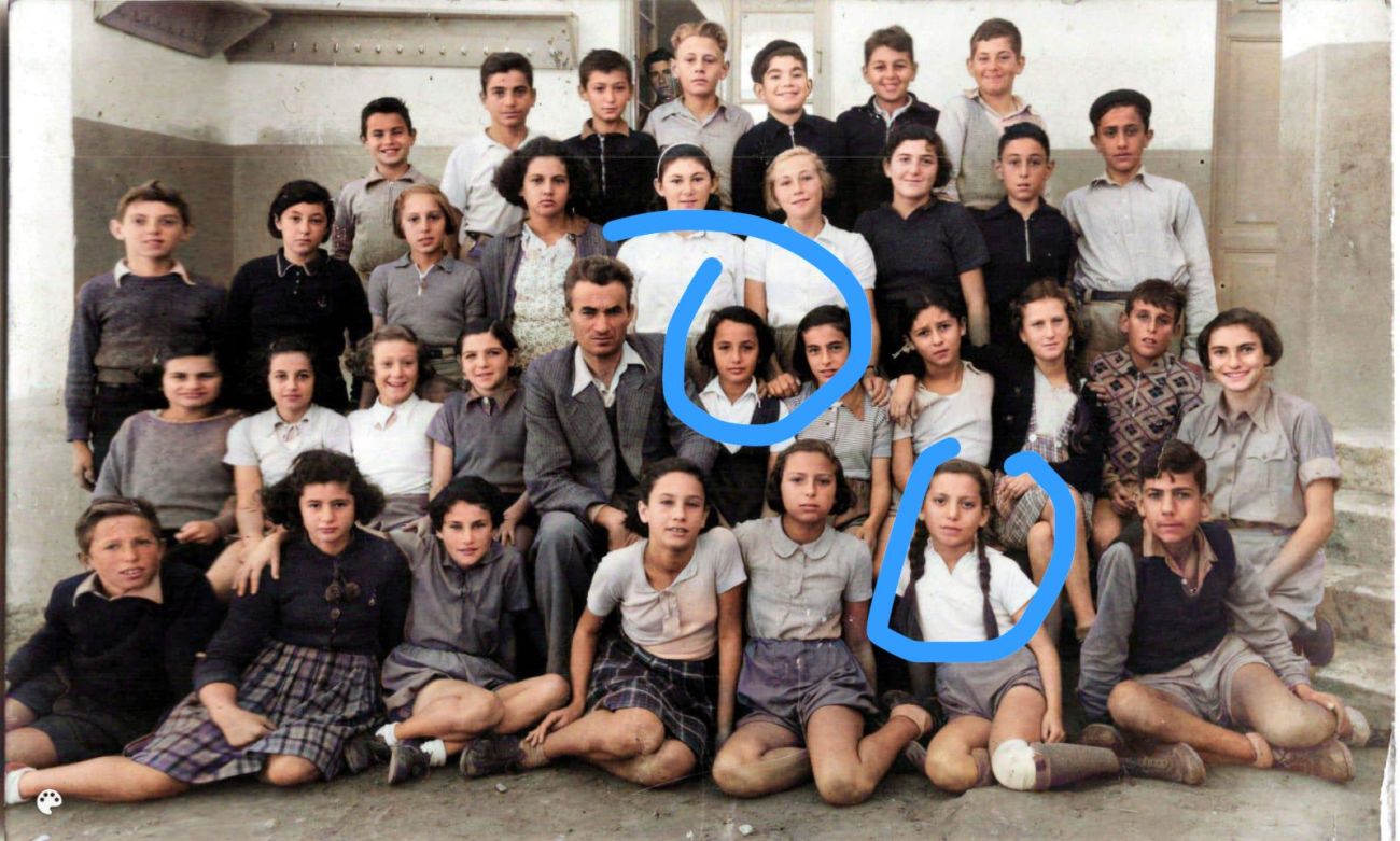 בתמונה מביה"ס חביב- גב' יפה מורך אגמון עם הצמות וגב' אסתר לנדו ויינברג יושבת ליד המורה.