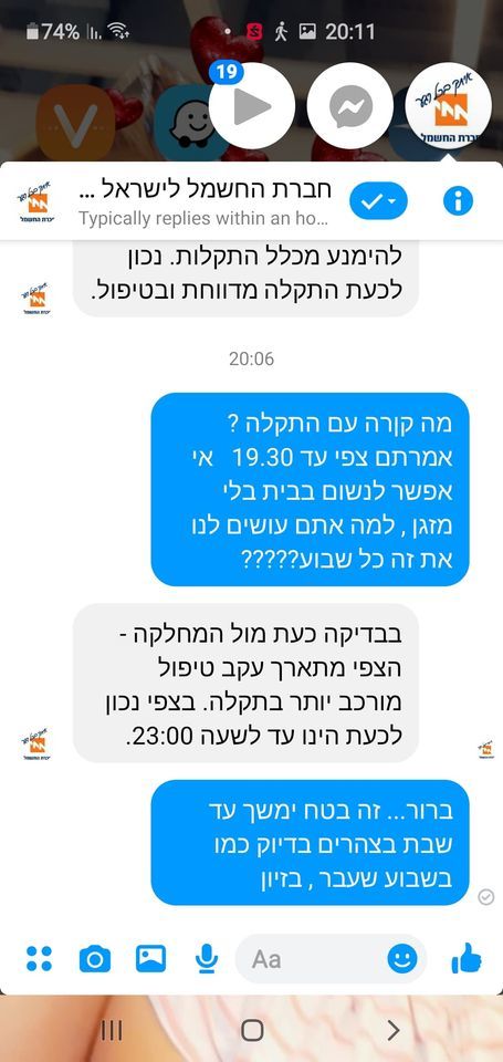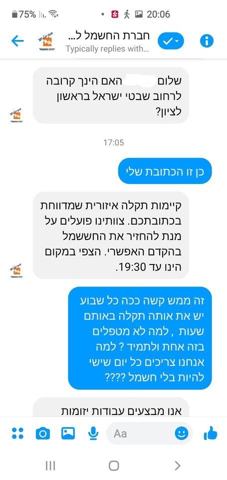 התושבים התכתבו עם חברת החשמל בנושא וכל פעם נאמר להם כי קיימת תקלה שמטופלת על ידי הצוותים, אך מדי שבוע כאמור חזרה התקלה שוב ושוב.