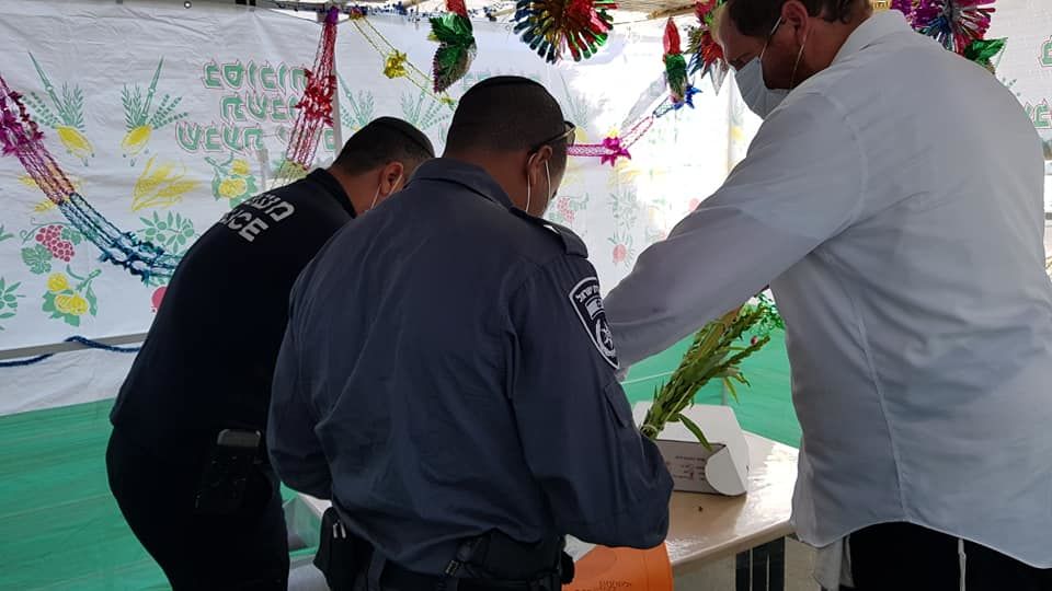 למרות ההגבלות והסגר, הרב חיים ריבקין מבית חב"ד אברמוביץ- משולש ז'בוטינסקי, לא וויתר על המסורת והגיע השבוע אל תחנת המשטרה של ראשון לציון, על מנת לאפשר לשוטרים לקיים את מצוות נטילת הלולב וברכה על 4 המינים. כדי לשמור על ההנחיות, ארבעת המינים, הונחו בסוכת השוטרים (אותה הקימו במקום), אליה הגיעו לברך.