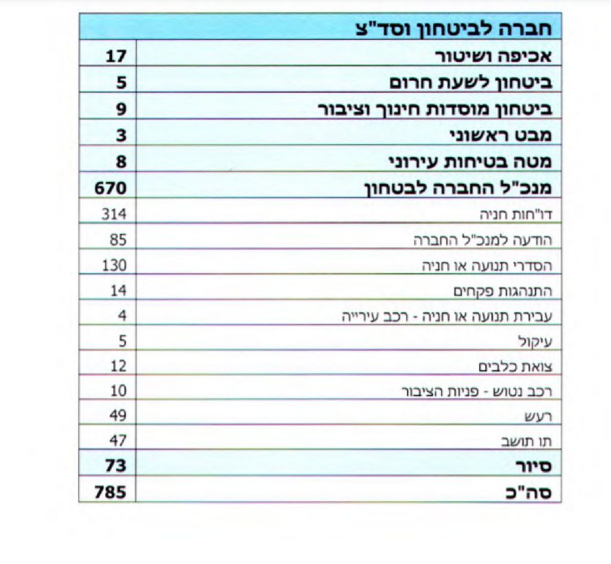 פניות הציבור קבלו קרוב ל800 פניות על החברה לביטחון ו670 פניות למנכ"ל החברה. עיקר הפניות היו בתחום