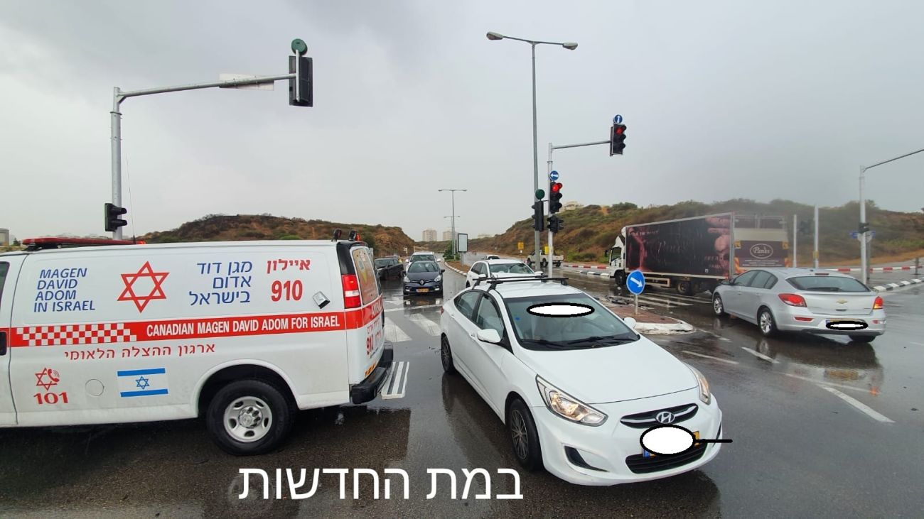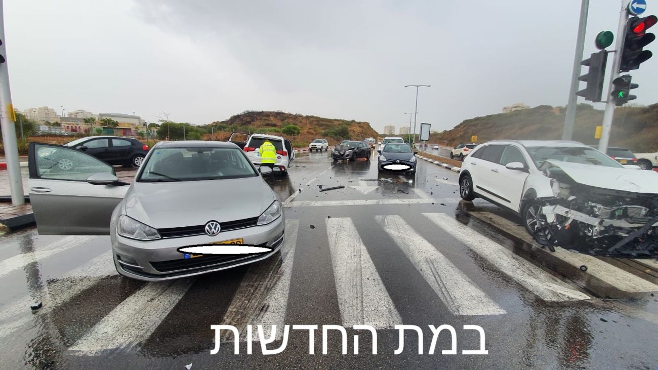 תאונות הגשם! 4 כלי רכב מעורבים בתאונה בראשון לציון, 4 פצועים קל בהם אישה בהריון