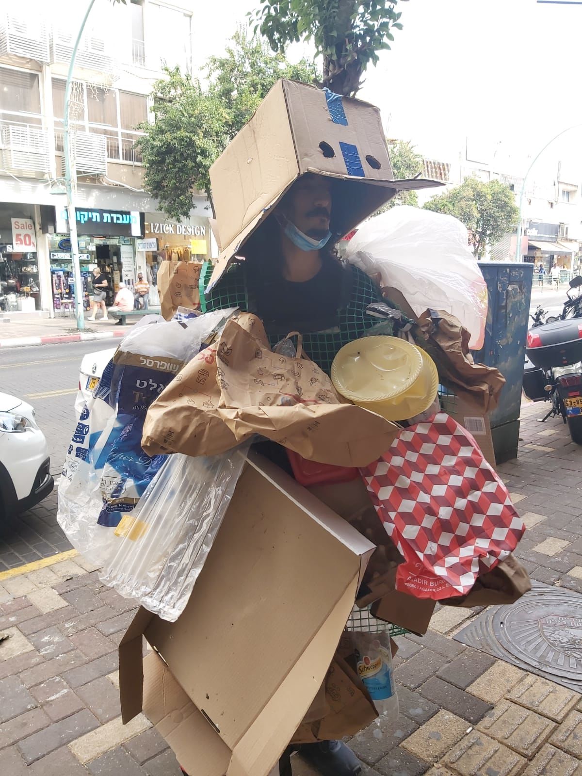 השבוע הוא הסתובב ברחובות העיר כשהוא מכוסה זבל מכף רגל ועד ראש. הסיבה: צילומים לקמפיין איכות סביבה, שמקדמת דוברות עיריית ראשון לציון בשיתוף מינהל איכות הסביבה בעירייה, שבוחנת את תגובת התושבים לערימת זבל ברחוב.