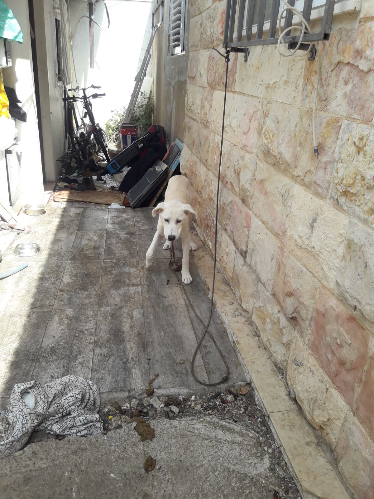 הכלב שלג הוחזק בתנאים ירודים, כשהוא נמצא מוזנח ועם רגל שבורה.