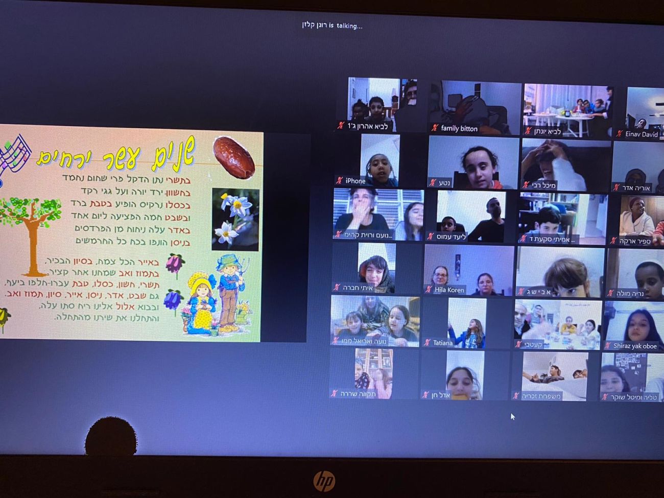 קיבצו את כל בני המשפחות לזום ופצחו בשירה. כל תלמיד קיבל את שירונים ויחד שרו שירי ט"ו בשבט לצד אכילת פירות יבשים.