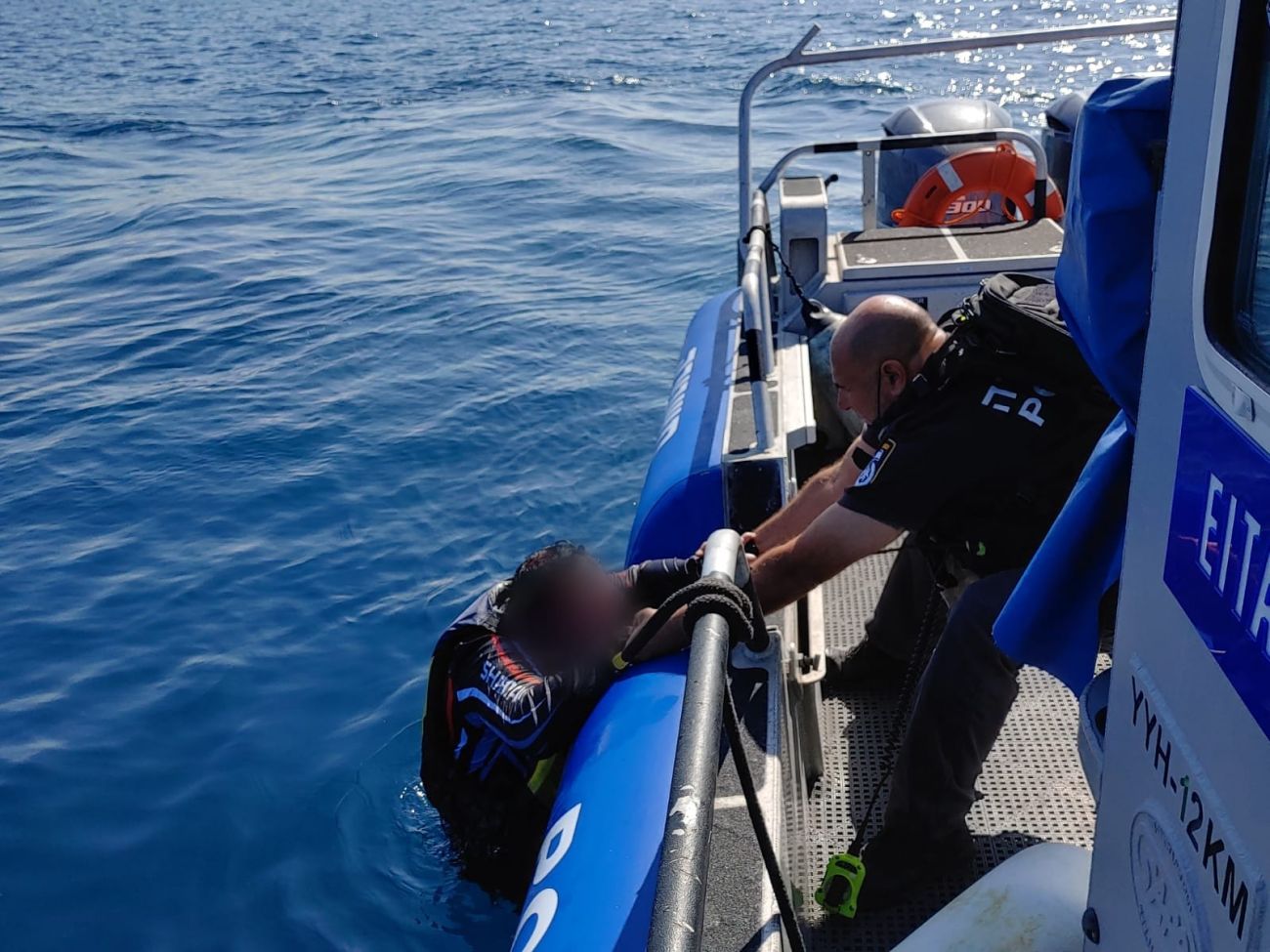 במהלך סריקות של ספינת השיטור הימי, מסוק משטרתי ומסוק צה"לי שהגיע לסייע, אותר במרחק של כ-3 ק"מ מהחוף, הקאייק והמשיט לידו כשהוא באפיסת כוחות.