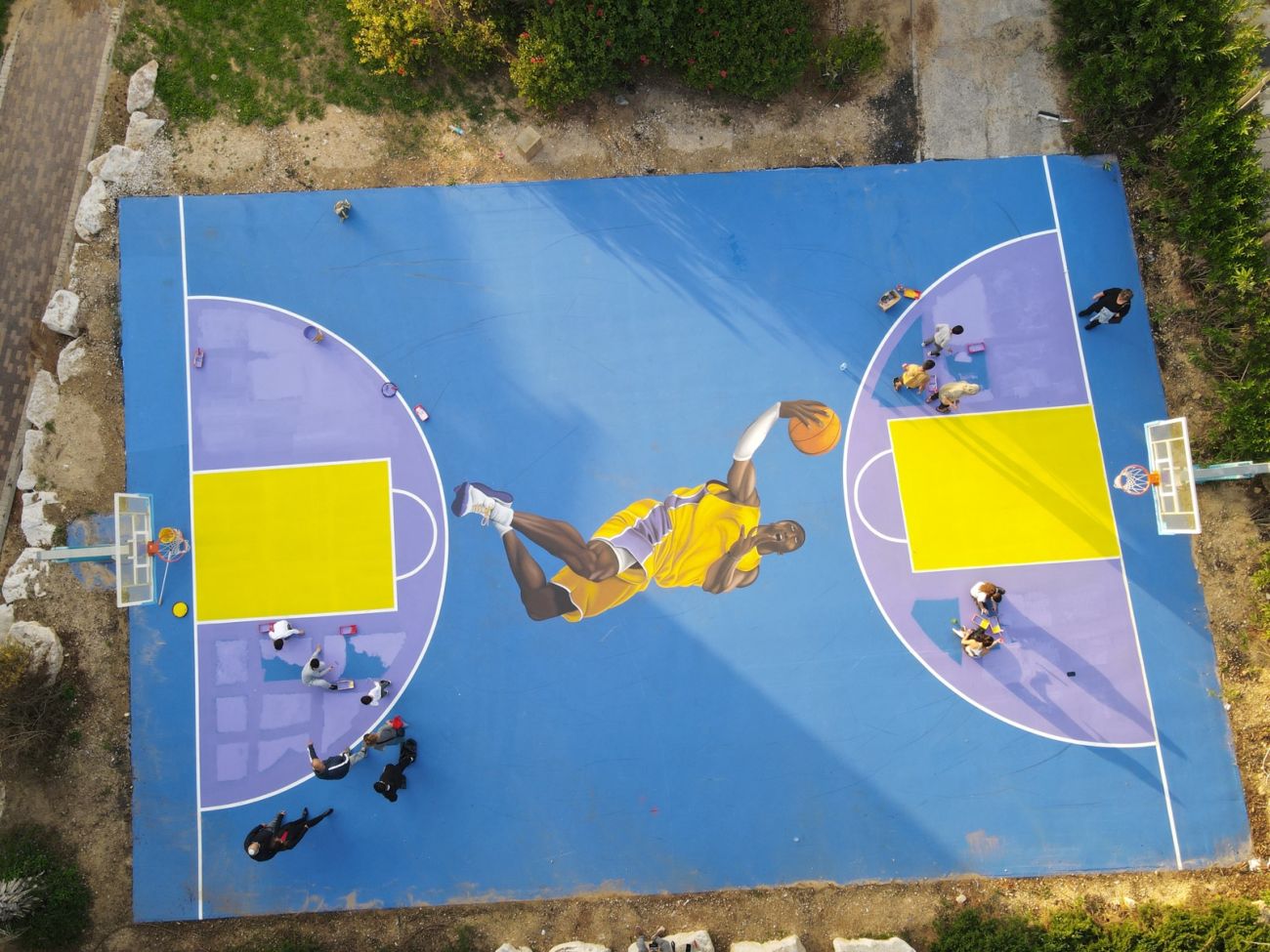 לפני מספר חודשים היה זה המגרש בשכונת רמת אליהו. עשרות צעירים ובני נוער, וגם משפחות עם ילדים קטנים, קשרו שקיות לרגליים, קיבלו מברשות ורולרים וניגשו למשימה. התוצאה: מגרש עם תבניות צבע בוהקות ולא שגרתיות ובמכרזו איור אייקוני בהשראתו של מייקל ג'ורדן, מי שנחשב אחד הכדורסלנים הטובים בתולדות ה-NBA.