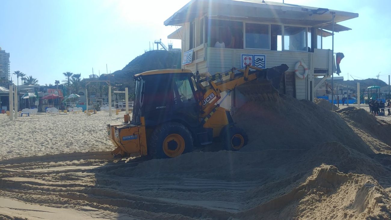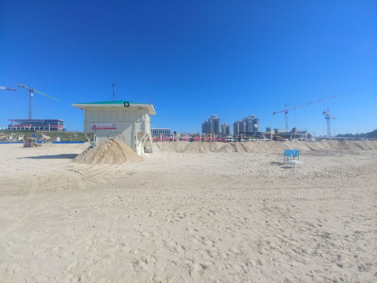 מצורף סרטון! חוף הים של ראשון לציון הפך "ליעד מבוצר" על ידי הקמת סוללות חול מחשש לגלים בגובה שישה מטרים.