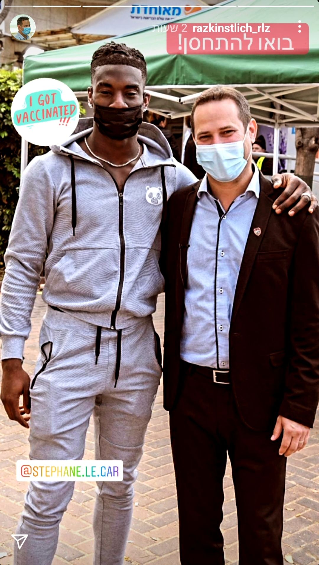 ראש העיר, רז קינסטליך הגיע השבוע אל אחד ממתחמי חיסוני הקורונה שם "הופתע" למצוא את הזמר האהוב ותושב העיר, סטפן לגר שהגיע להתחסן.