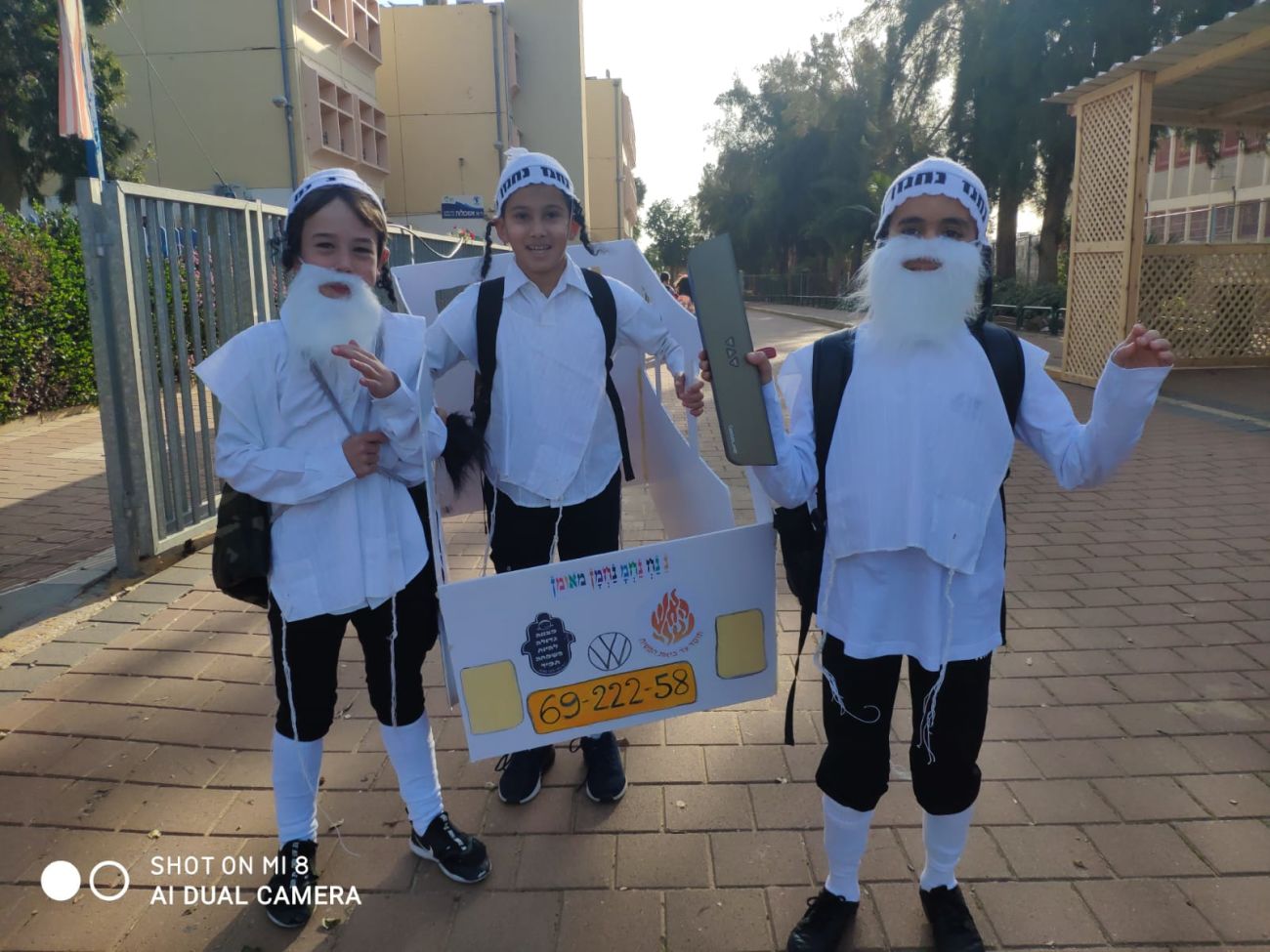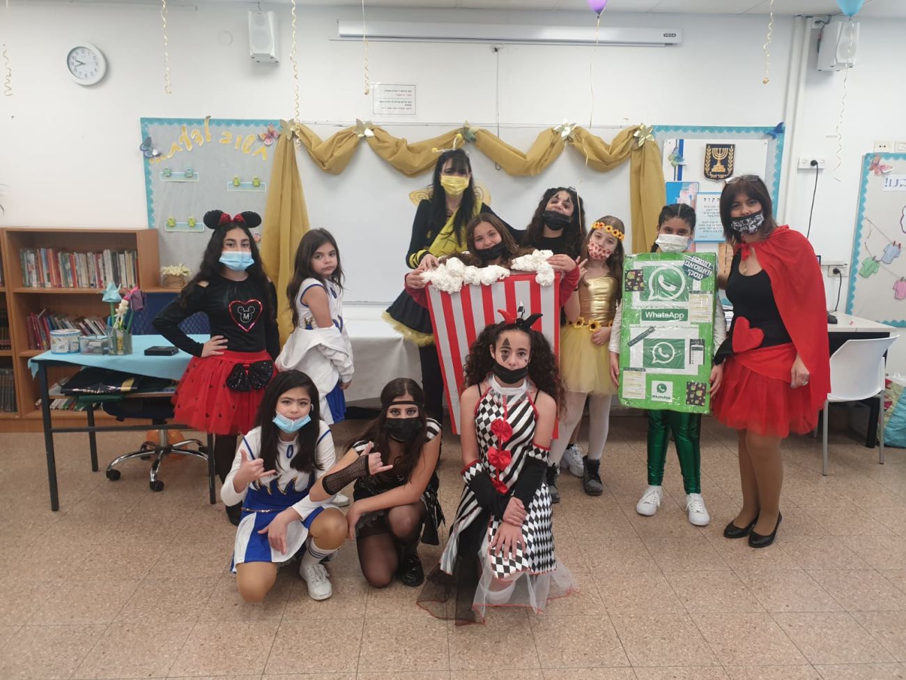 התלמידים הראו מקוריות בתחפושות השנה שהיו בנושא תקופת הקורונה: הרמזור, זום, רפואה ועוד.