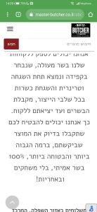 אורחכתבה - הפתעה בבשר החי: צואת פרה ישראלי ששלח את חברו לקנות עבורו בשר בקר מסניף של רשת "יינות ביתן", נחרד לגלות בתוך המגש העטוף בניילון צואה שהייתה מרוחה על כל המוצר. הלקוח: "מדובר במחדל חמור" https://www.mako.co.il/hix-special/Article-37c54562d546161006.htm כתבה - בשר מקולקל ופג תוקף: נסגר בית הפצה לבשר שפעל במערב העיר https://www.hashikma-rishon.co.il/news/1277102.03.21 10:46 תגובה