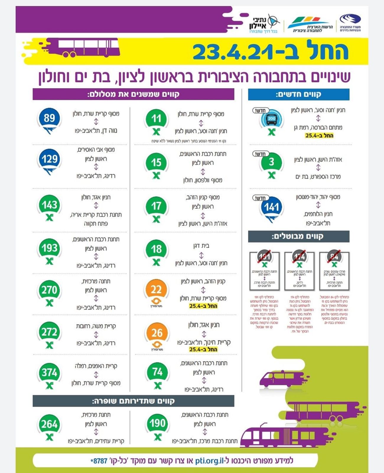 החל מיום ראשון 25.4 יחולו שינויים במסלולי קווי מטרופולין