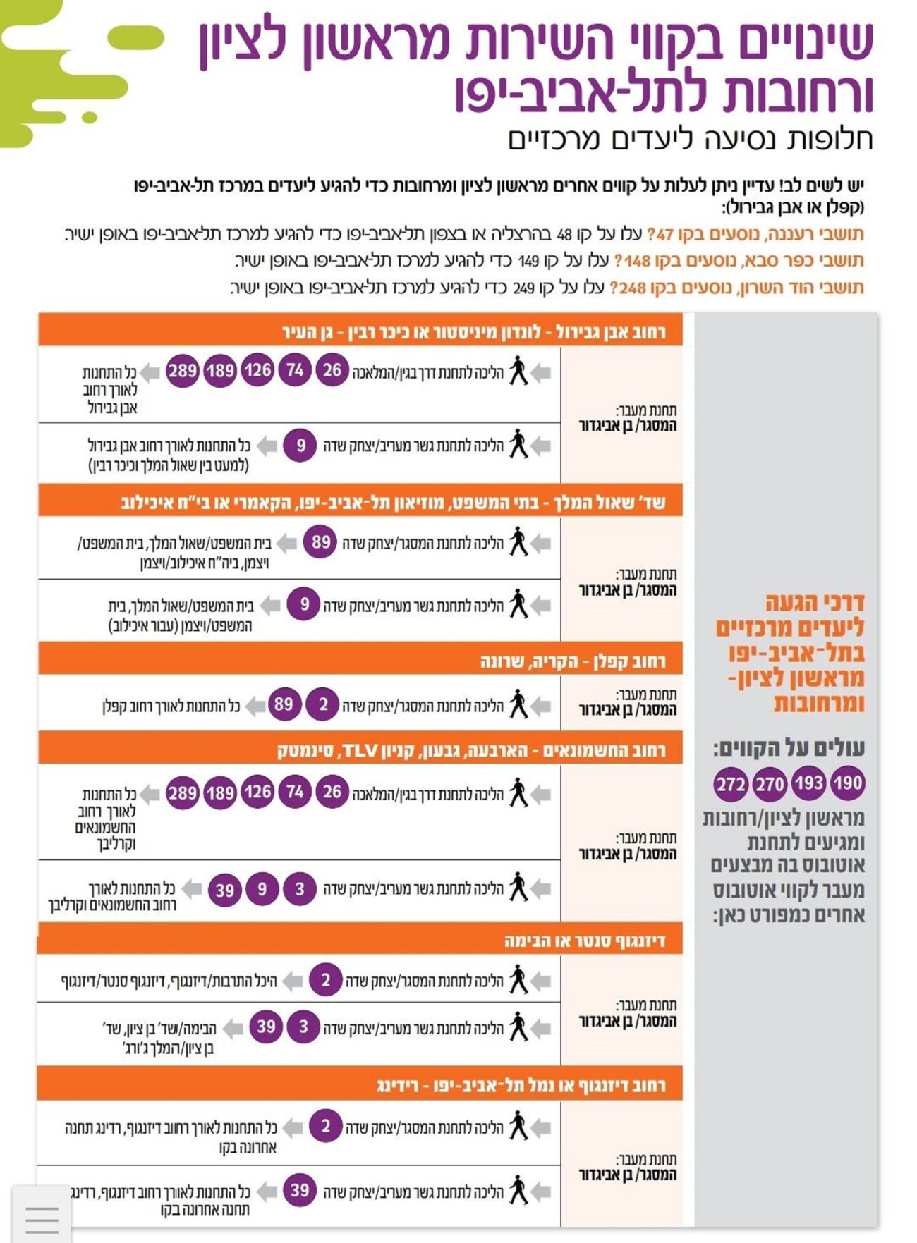 השינויים הם עקב עבודות הרכבת הקלה בת"א אביב שיביאו לשינויים בתחבורה הציבורית ברחבי גוש דן.