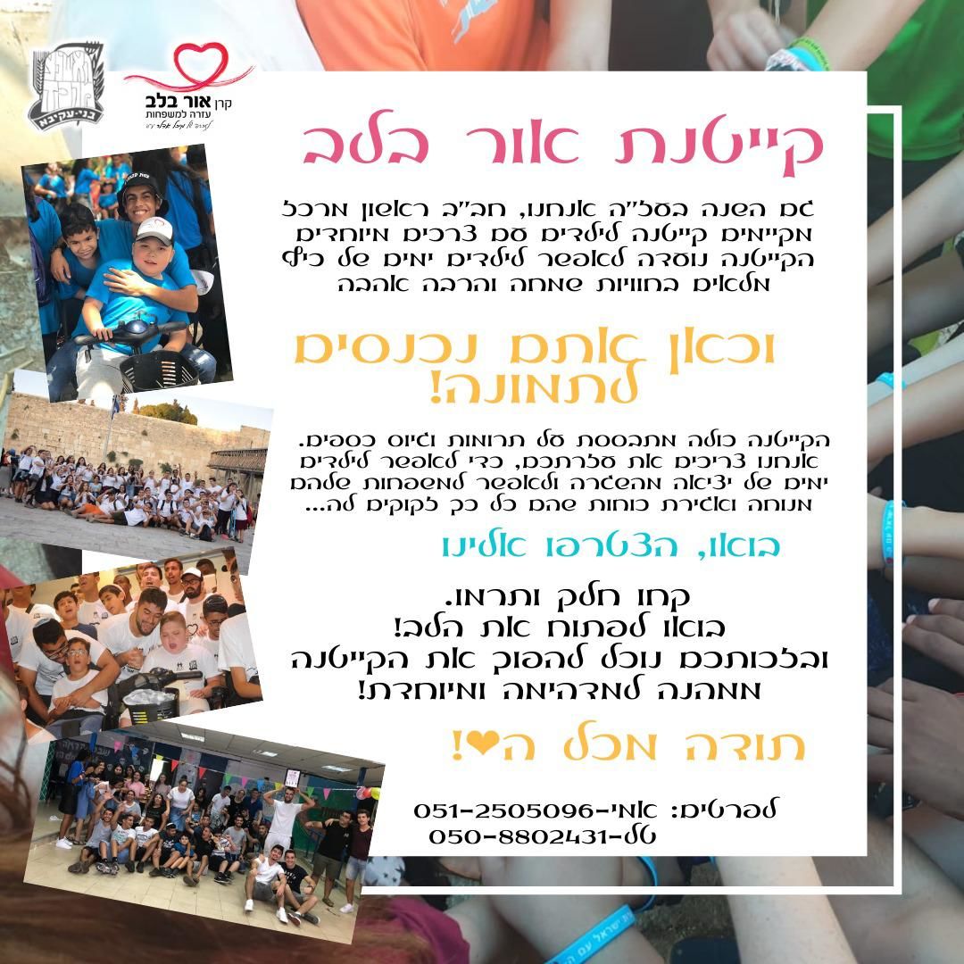 תנועת הנוער, בני עקיבא בראשון לציון החלה במבצע תרומות להפעלת קייטנת קיץ עבור ילדים עם צרכים מיוחדים; לתרומות 0508802431