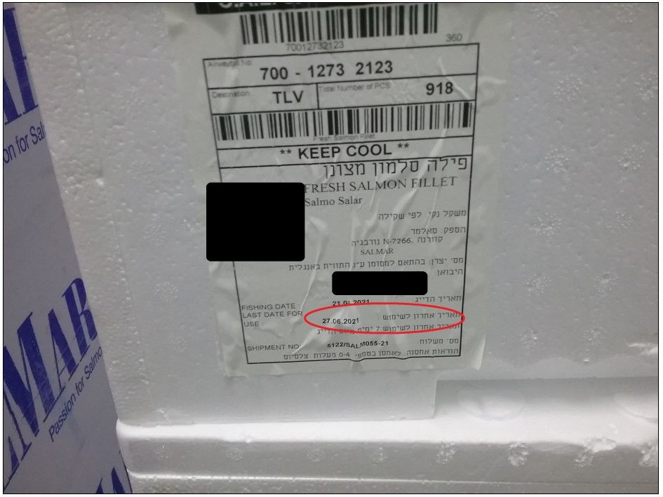 במהלך הביקורת נמצאו במקום ליקויים תברואיים וכן דגי סלמון שתוקפם פג, בעלי שינויים אורגנולפטיים חריפים, שאינם ראויים למאכל אדם. בהוראת הרופאה הווטרינרית הושמדו כ- 300 ק"ג של דגי סלמון העלולים לסכן את בריאות הציבור ואינם ראויים למאכל אדם.