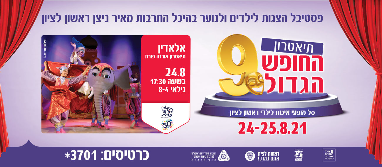 תיאטרון החופש הגדול יוצא לדרך! היכל התרבות בראשון לציון פתח בימים אלו את מכירת הכרטיסים לתיאטרון החופש הגדול בו מוצעים למשפחות מיטב הצגות איכות לילדים ונוער במחיר של 45 ש"ח לתושבי ראשון לציון. ההצגות יוצגו במשך יומיים ב24-25.8 עם שתי הצגות ביום - הצגה בבוקר והצגה אחר הצהריים
