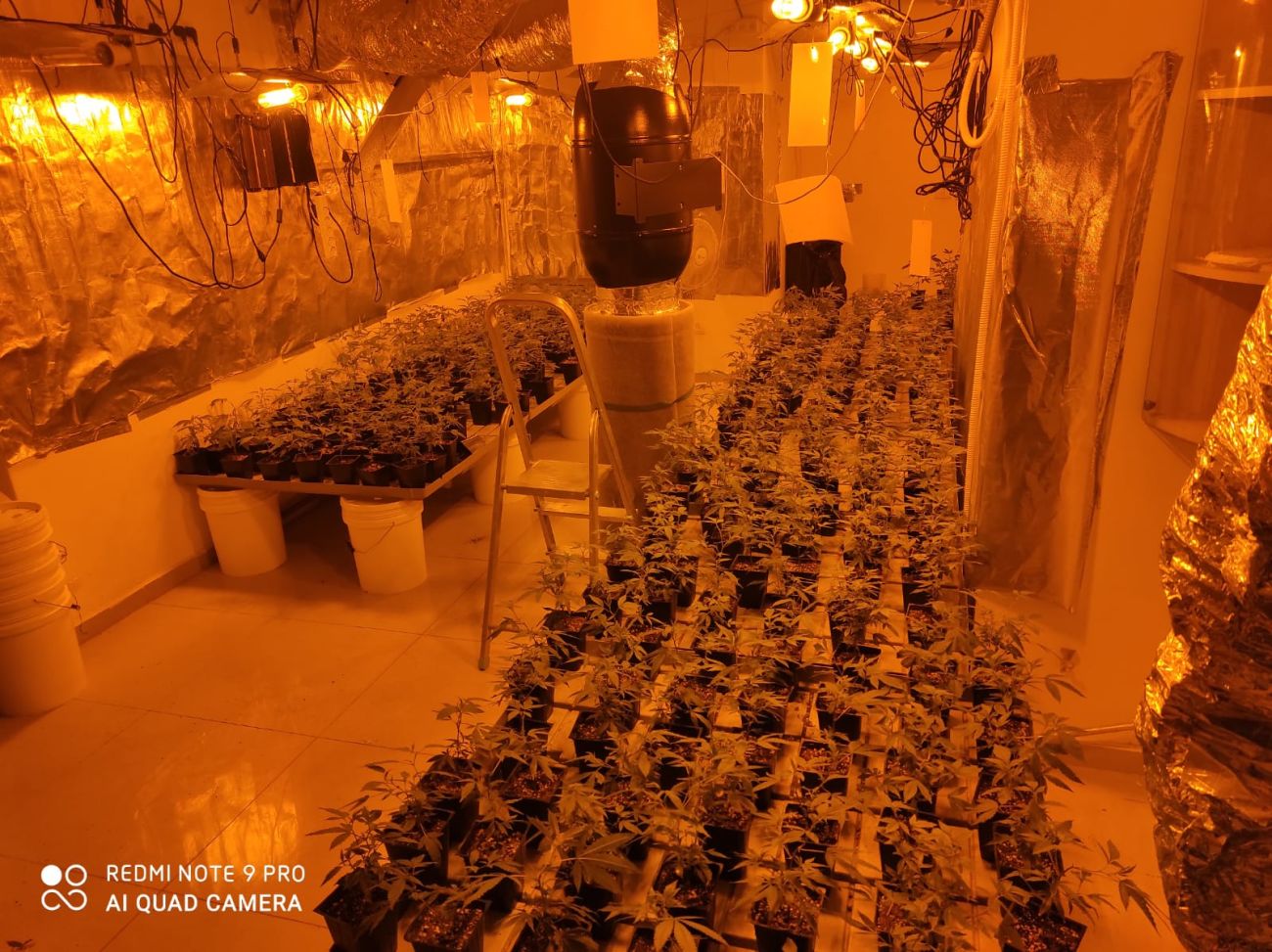 במהלך חיפוש בדירה אותרה מעבדת סמים בקומת המרתף ובה נתפסו 160 שתילים במשקל כולל של 2.5 ק"ג. כמו כן נתפסו 750 גר' של חומר החשוד כסם מסוג קנאביס בשקיות מוכנות, טלפונים סלולריים וכרטיסי סים, משקלים דיגטלים ואלפי שקלים במזומן.