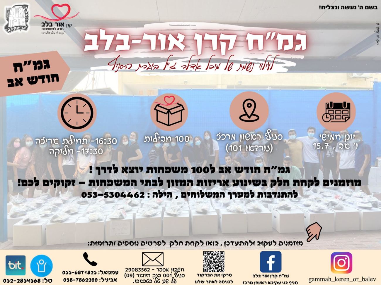 דרושים מתנדבים/ות לחלוקת חבילות מזון שתתבצע מחר (חמישי 15.7) בגמ"ח אור בלב של סניף בני עקיבא בראשון לציון; לפרטים הילה 0535304462