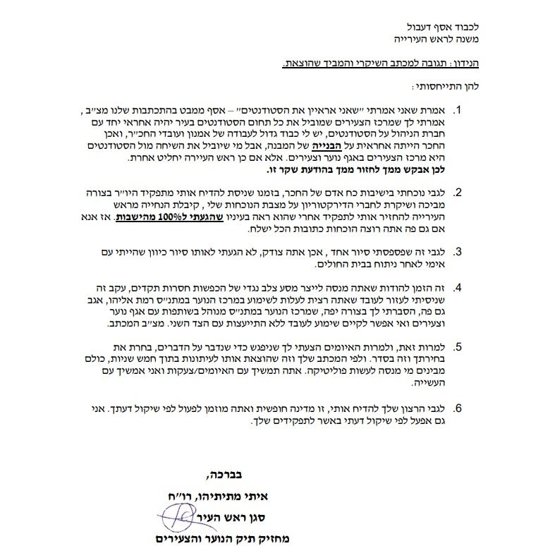 מצ"ב המכתבים ההדדיים של אסף דעבול ואיתי מתיתיהו