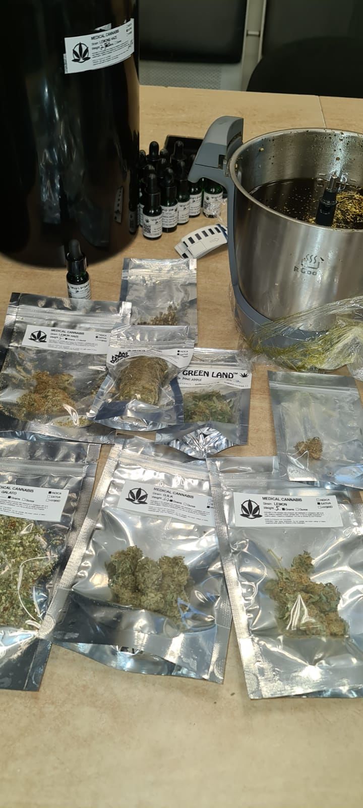 בבית אותרה מעבדה לגידול והפקת שמן קנאביס בכמות מסחרית ונתפסו 97 שתילי קאנביס במשקל 10 ק"ג ברוטו, שמן קנאביס במשקל 2 ק"ג, חצי קילו של סם מסוג קאנביס, משקלים דיגיטליים, טלפוניים סלולריים וכן ציוד רב המיועד לאריזה והפצת הסם.
