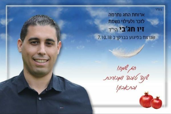 לזכרו של זיו חג'בי ז"ל שנרצח בפיגוע בברקן, יצאה רעייתו נטלי במבצע מיוחד לרגל חגי תשרי - חלוקת ארוחות חמות על מנת לדאוג כי בני הגיל השלישי וכל משפחה שאין לה תוכל לזכות לחגוג את החג כמו שצריך.