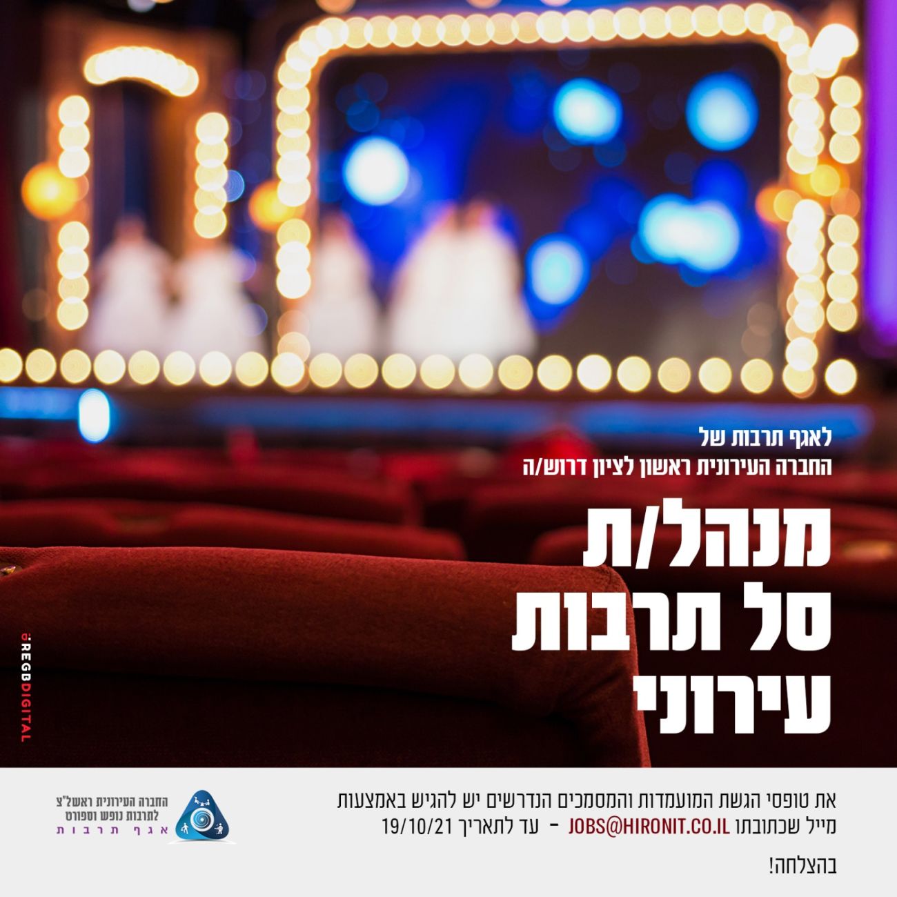 דרושים/ות לחברה העירונית והיכל התרבות בראשון לציון: מנהל/ת סל תרבות עירוני, רכז/ת תרבות ומנהל/ת חשבונות; מועמדות יש להגיש דרך המייל המצ"ב בכתבה