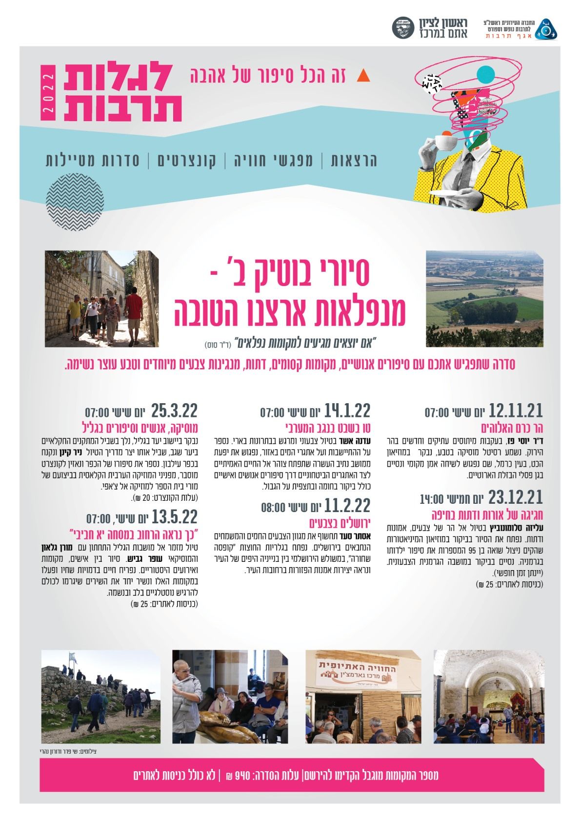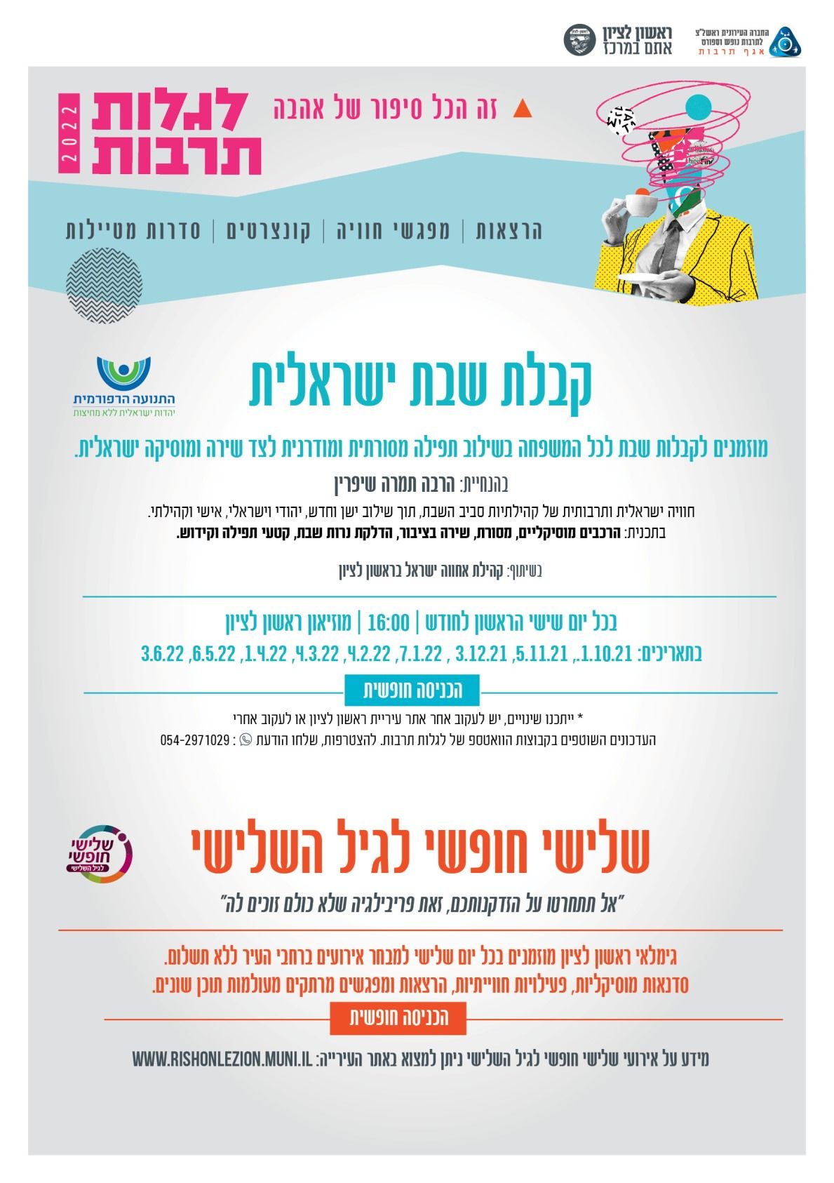 החברה העירונית ראשון לציון פותחת את עונת הפעילות של תוכנית "לגלות תרבות" עם מגוון הרצאות, טיולים, קונצרטים של ליאוניד פטשקה, מפגשים עם יונה אליאן, יוכי ברנדס ועוד; לפרטים נוספים: 03-9537000
