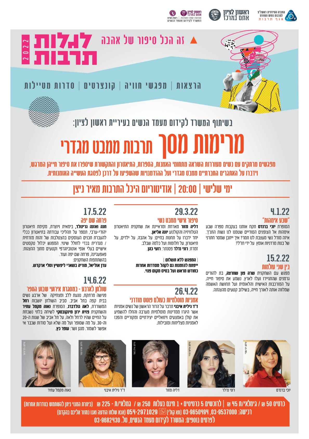 לפרטים נוספים ניתן לפנות למשרדי תחום תרבות 03-9537000 בשעות הפעילות או לשלוח הודעת וואסאפ ל 0542971029 .