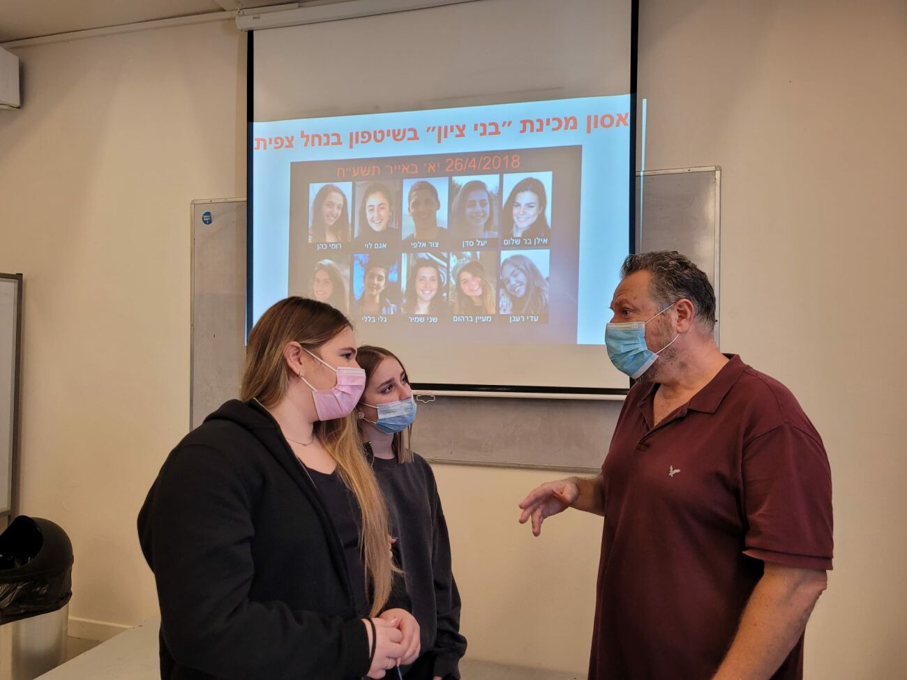 לקראת המסע נפגשו תלמידי בית הספר עם אריק שמיר, אביה של אחת מהנערות שנהרגו שני שמיר ז"ל. יניר וקנין תלמיד יא' סיפר לאחר המפגש המרגש: "היכולת של אריק לעמוד ולדבר על הבת שלו ועל האסון הרשימה אותי. הוא העביר את הנושא בצורה שוטפת, הצליח להפריד בין הרגש והאבל האישי לבין הביקורת העניינית ושאלת האחריות שעומדת סביב המקרה.