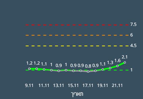 בימים האחרונים חלה עלייה בציון הרמזור של ראשון לציון שעמד על 1.3 וכעת עבר את 2. למרות העלייה ראשון לציון עדיין ירוקה.