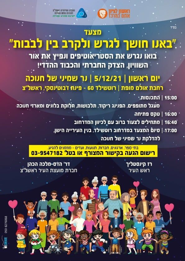 ביוזמת חברת המועצה הדס הכהן, יתקיים בראשון לציון ביום ראשון (5.12) מצעד "באנו חושך לגרש ולקרב בין הלבבות" שנועד לקרב בין הצדדים וקורא לאהבת חינם