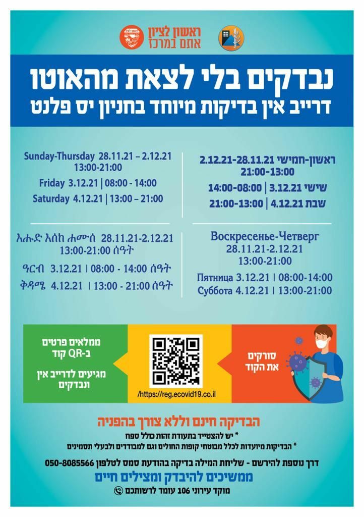 גם השבוע יפעל מתחם בדיקות הקורונה במתחם היס פלאנט