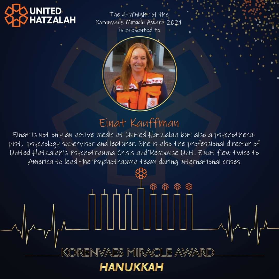חובשת איחוד הצלה, עינת קאופמן מראשון לציון נבחרה לאחת משמונה הנשים המשפיעות של קרן קורנוויס על פעילותה הרבה להצלת חיים בישראל ובעולם