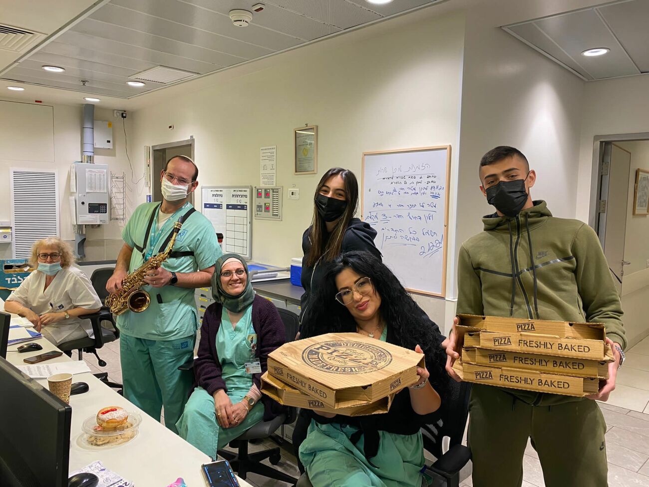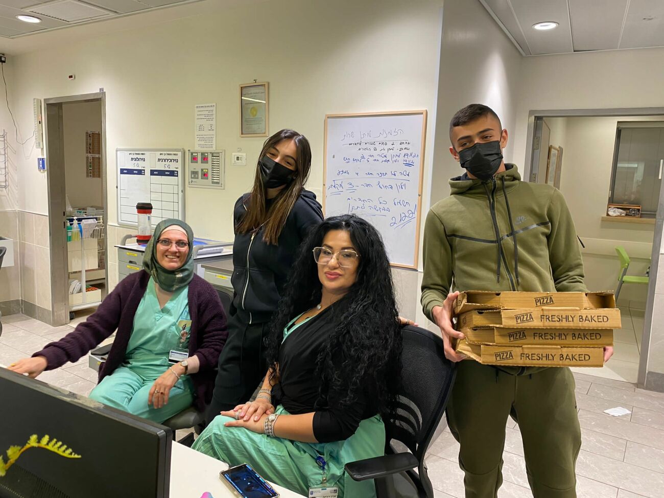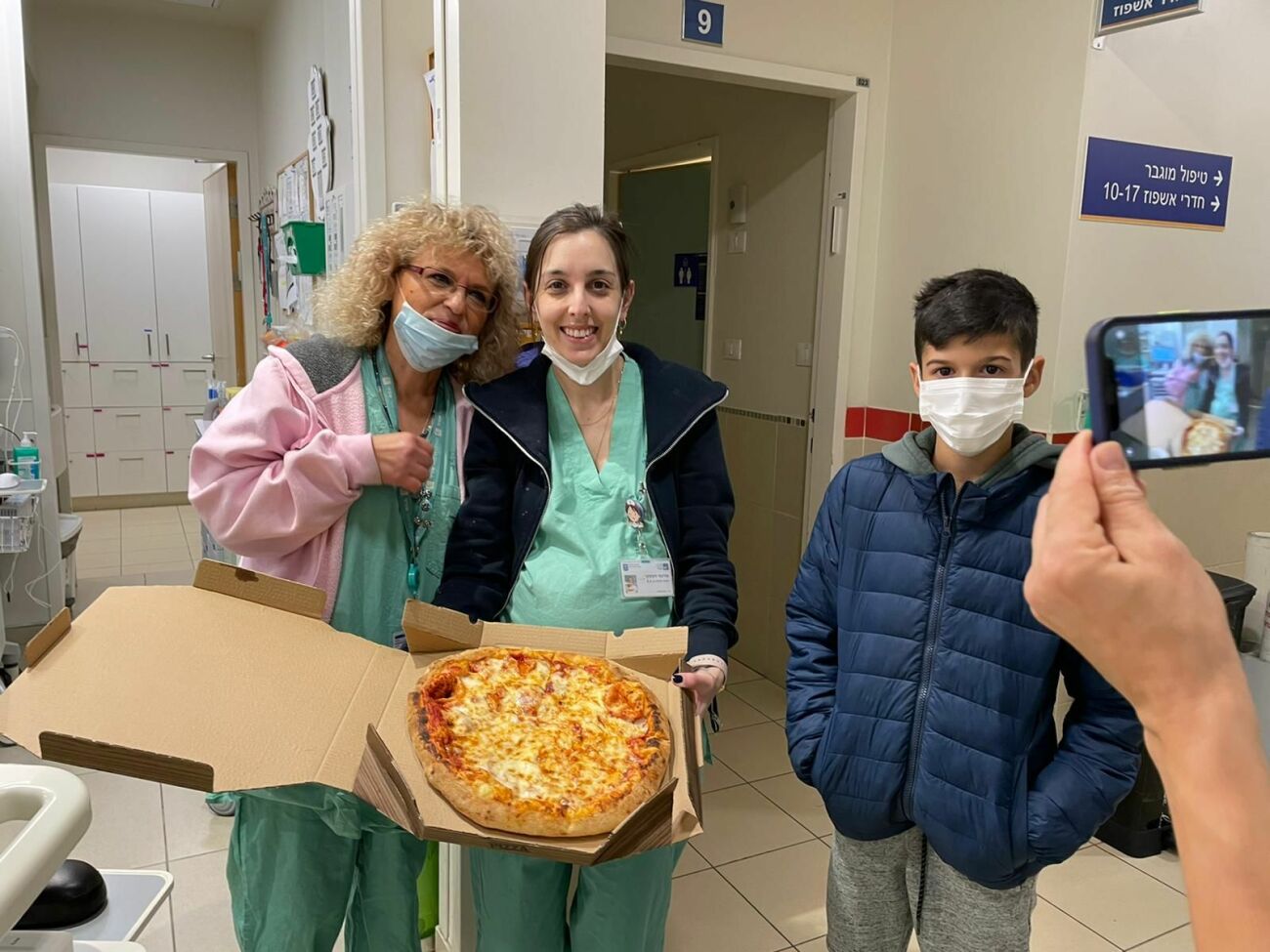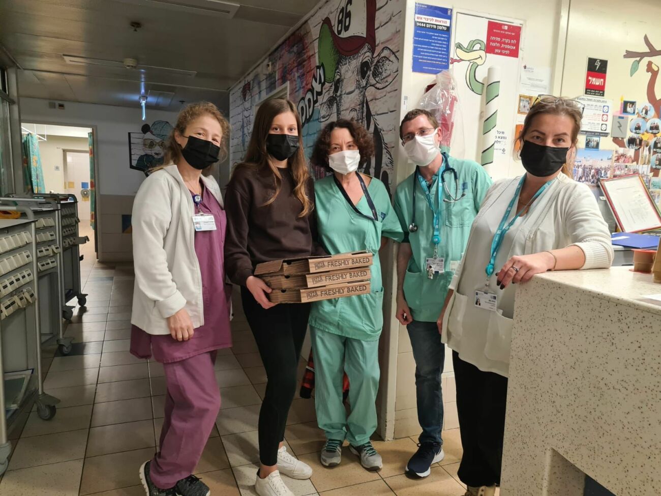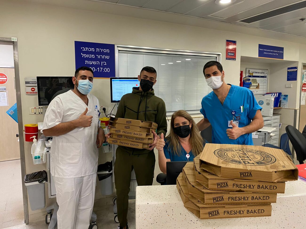 ביוזמת תלמיד מקיף י"ג- יצחק נבון בראשון לציון, רז אילוני יצאה קהילת בית הספר לחלוקת מגשי פיצה מעשי ידיהם לצוותי הרפואה בביה"ח שמיר אסף הרופא