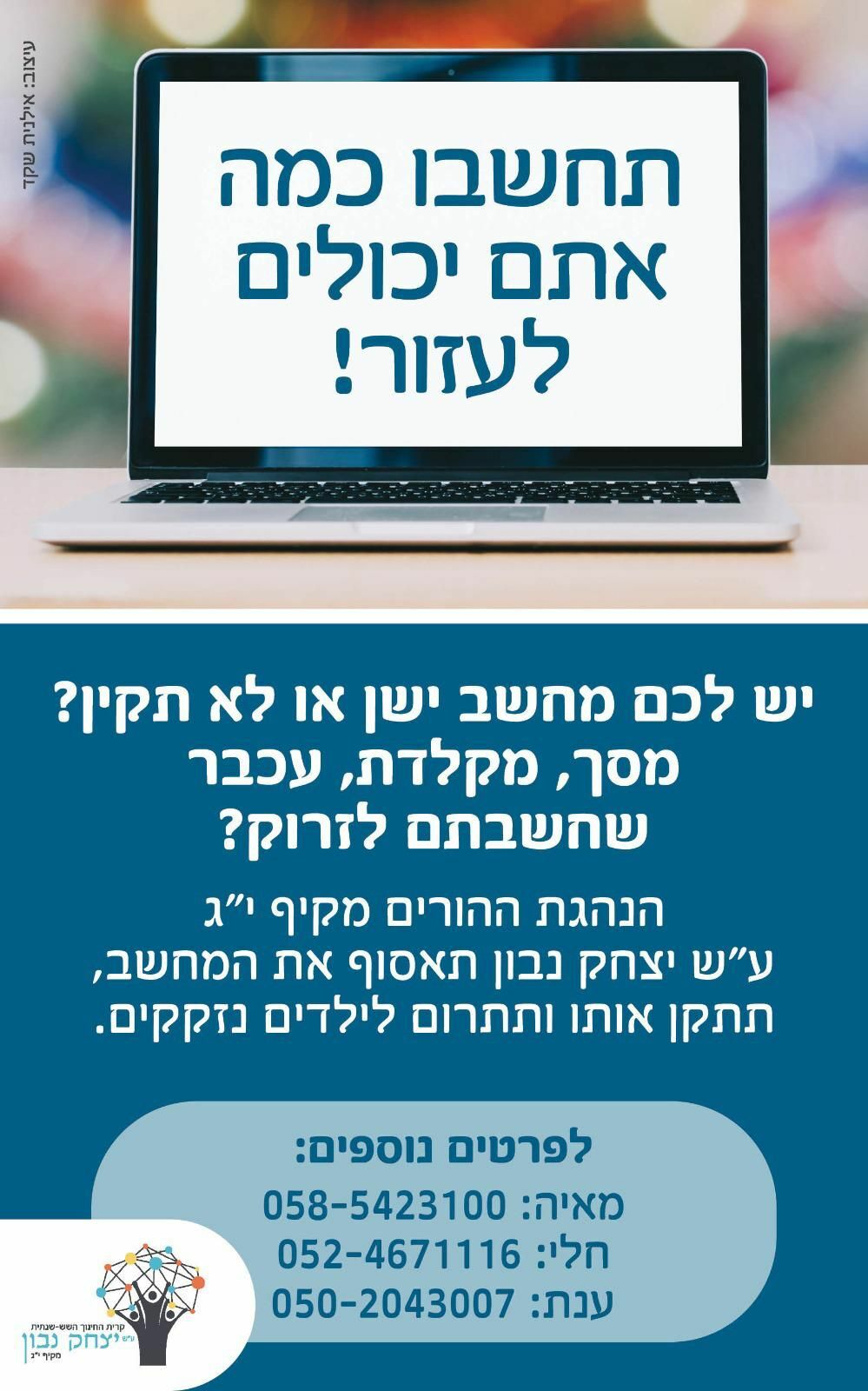 מספר הורים, טכנאים במקצועם, עושים זאת באהבה ורואים זאת כשליחות. שמחים לשתף פעולה עם סגן ראש העיר, איתי מתיתיהו, ואגף הנוער וקוראים למי שיש מחשבים לתרומה ליצור איתנו קשר.