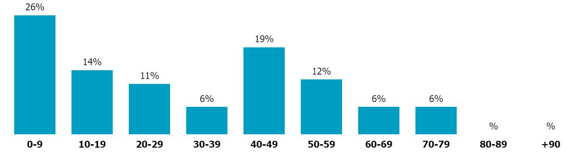 התפלגות החולים הפעילים על פי גיל בראשון לציון
