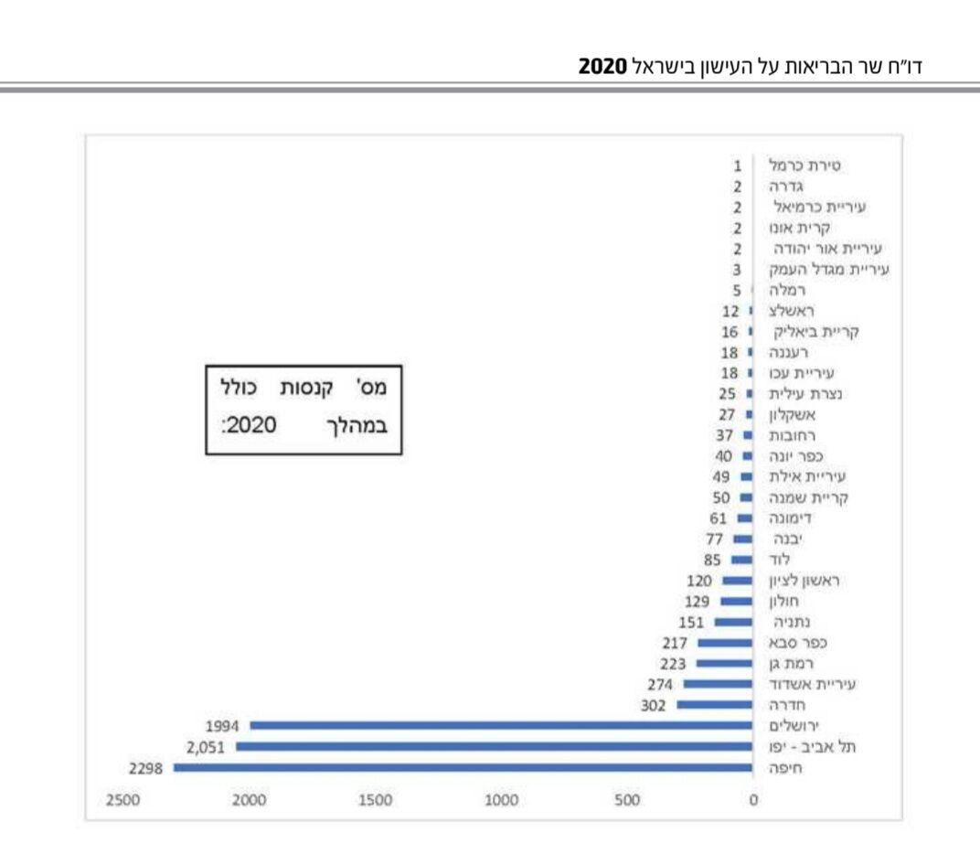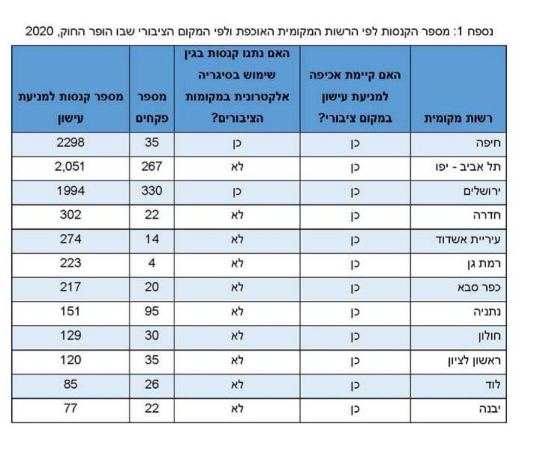 הנתונים בדוח מראים כי בשנת 2020 נתנו 8,291 דוחות על עישון במקומות ציבוריים וברחבי הארץ פועלים 1,274 פקחים שעוסקים באכיפת החוק.