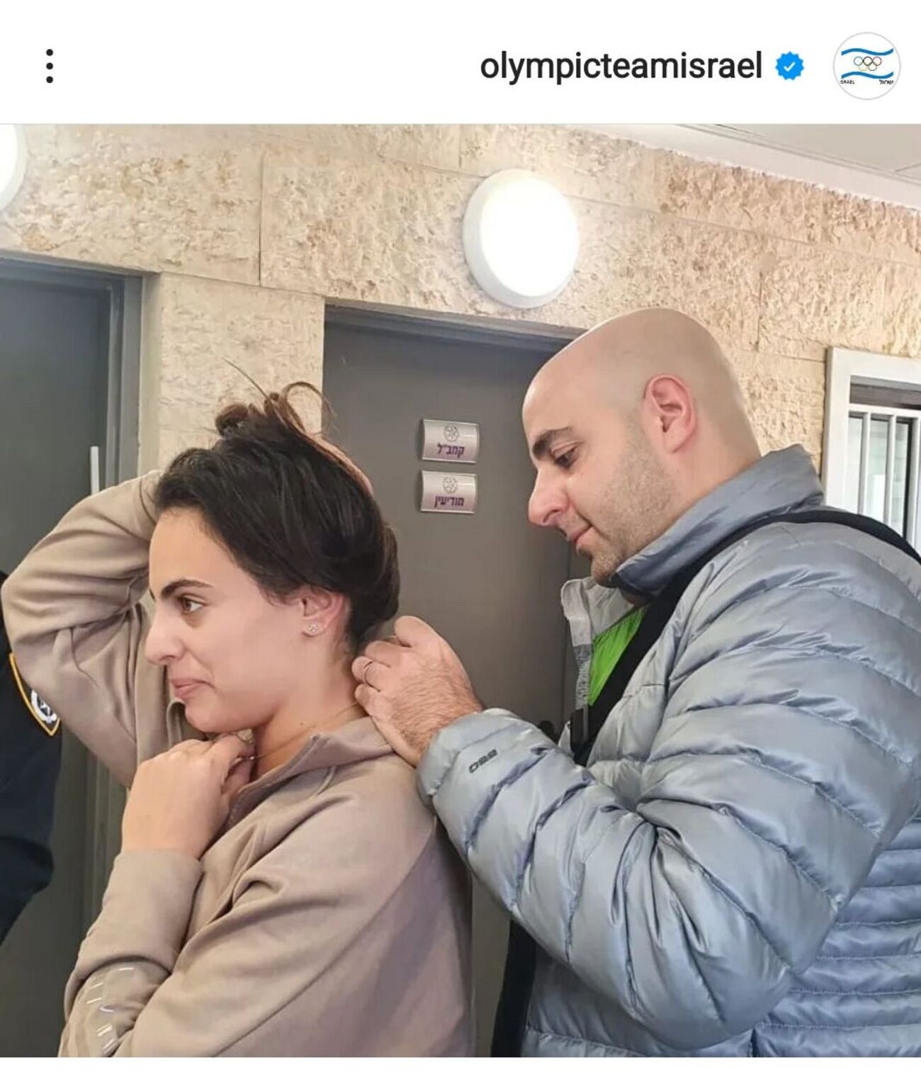 היום נפגשה לינוי אשרם עם נציגי המשטרה אשר החזירו לה את שרשרת הזהב, עם סמל האולימפיאדה שנגנבה לה במכון וינגייט. כזכור משטרת ישראל מצאה את השרשרת במקרה כאשר בלשי תחנת המשטרה בג'סר א זרקא ערכו מספר חיפושים בכפר, במסגרתם עצרו חשוד שברשותו נמצא סמים שלא לצריכה עצמית. בזמן מעצרו נערך חיפוש על גופו וכך נמצאה השרשרת. על פי החקירה החשוד עובד במכון וינגייט.