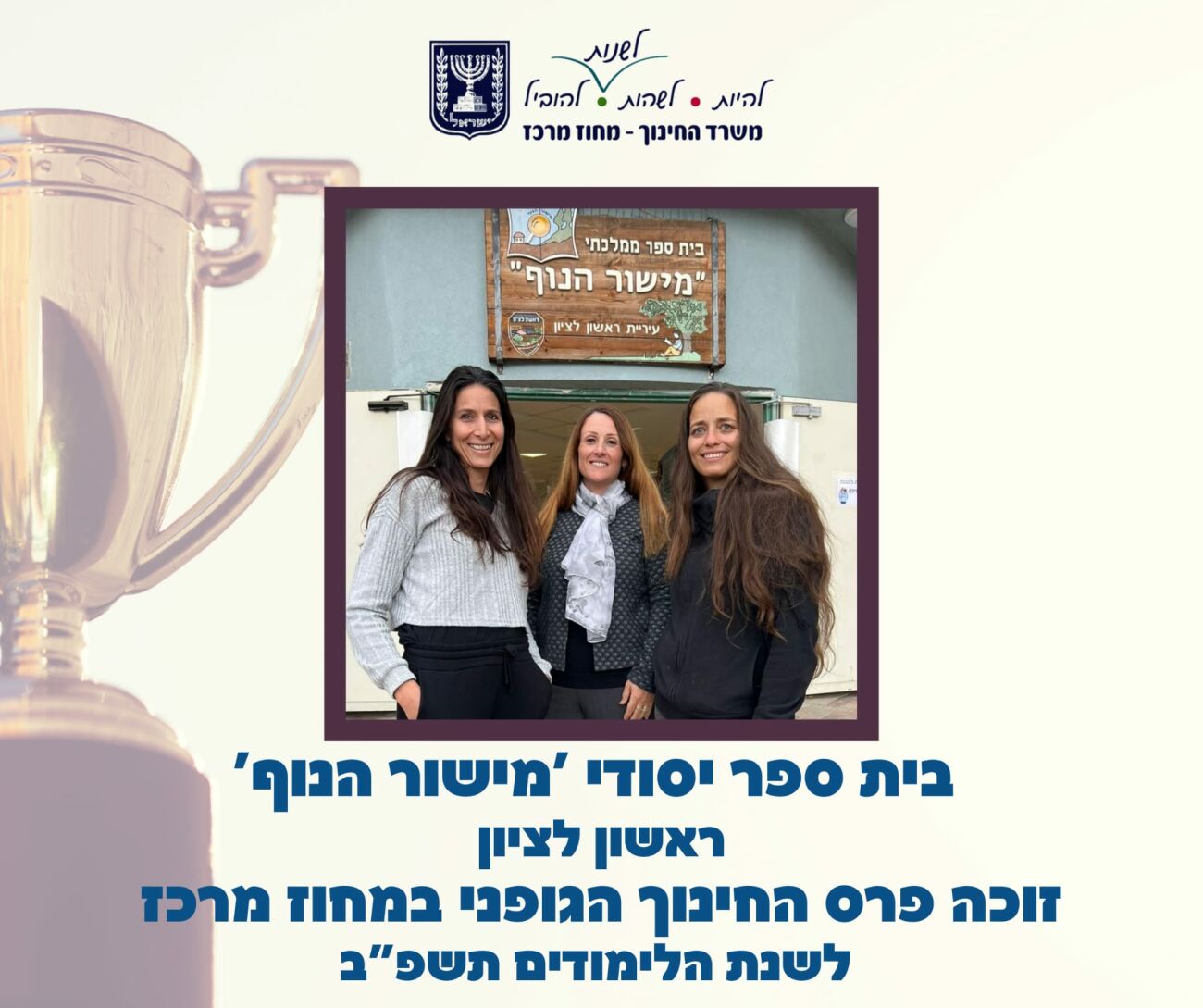 בין בתי ספר הזוכים בפרס החינוך הגופני המחוזי נמצאים 3 בתי ספר מראשון לציון:
