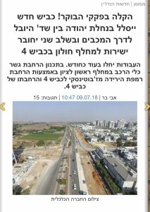 הסוף לפקקים בכביש 4? לאחרונה התחילו עבודות בכביש 4 על הקמת מחלף צפון נחלת יהודה. מדובר בבשורה גדולה לתושבי ראשון לציון, שכן המחלף החדש עתיד להפחית משמעותית עם העומס בעלייה לכביש 4 מכיוון רחוב ז'בוטינסקי, ולספק מענה לתנופת הבנייה בעיר. המחלף החדש יאפשר כניסה ויציאה מהעיר משכונת נחלת יהודה (דרך המכבים, כביש 412), ועיריית ראשון לציון באמצעות החברה הכלכלית תשלים את סלילת רחוב יצחק שמיר שיהווה המשך של שדרות היובל. העבודות, שהחלו בשבוע שעבר, צפויות להסתיים בדצמבר 2023.
