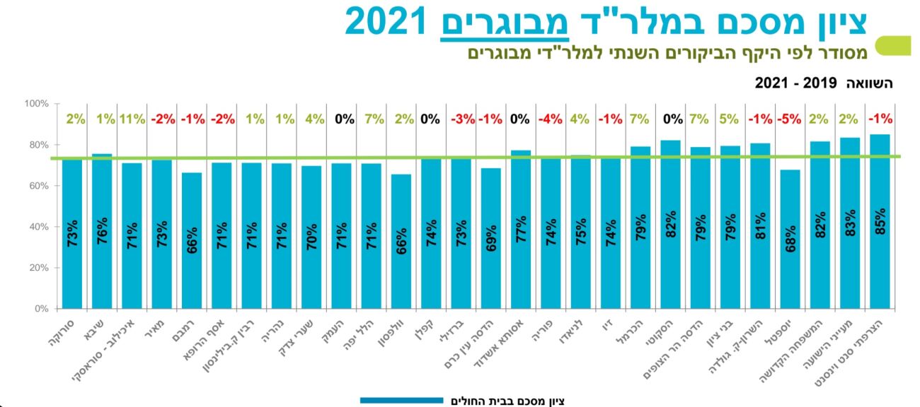 חשוב לציין כי כל הדירוגים המופיעים בגרפים מתייחסים לכלל בתי החולים ללא הבדל בין גודלם.