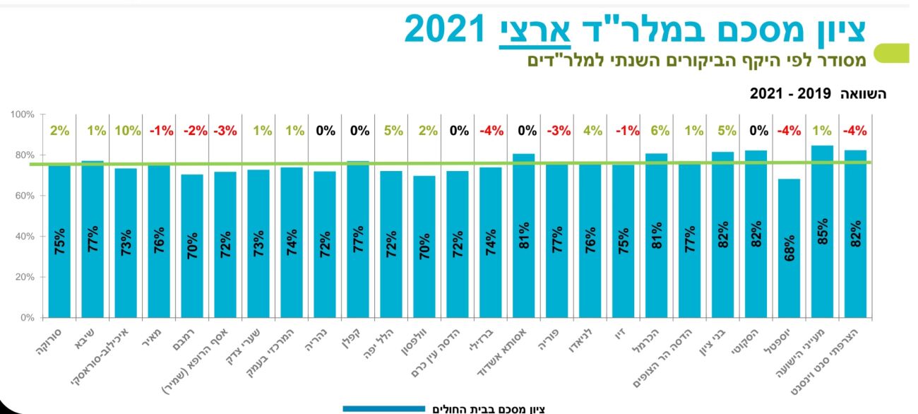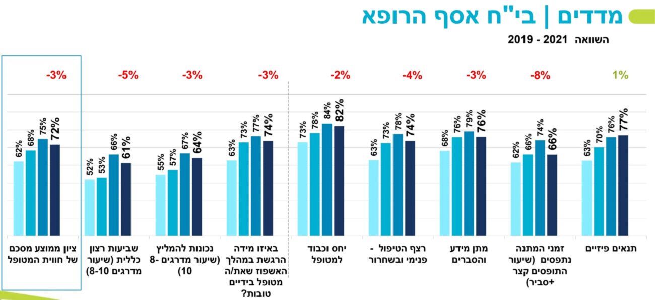 הבוקר, יום רביעי, התפרסמו נתוני סקר "חווית המטופל" של משרד הבריאות, הבודקים את שביעות הרצון בקרב מטופלי המלר"דים בכלל בתי החולים בישראל. הסקר נערך בין החודשים מאי -נובמבר 2021 בה נשאלו המטופלים בכלל בתי החולים. על פי הנתונים ברמה הלאומית ברוב הפרמטרים נרשמה עלייה בשביעות הרצון של המטופלים לעומת הסקר בשנת 2019 אך נרשמה ירידה בשביעות הרצון ממיוני הילדים.