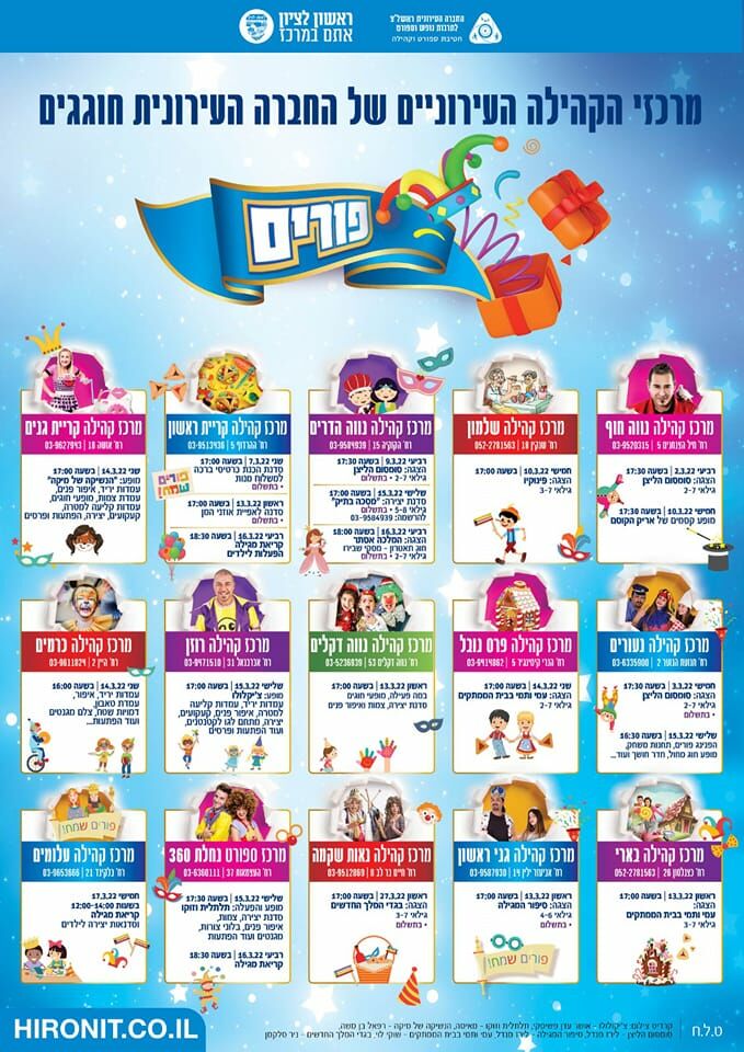 פורים במרכזי הקהילה- מתנ"סי החברה העירונית