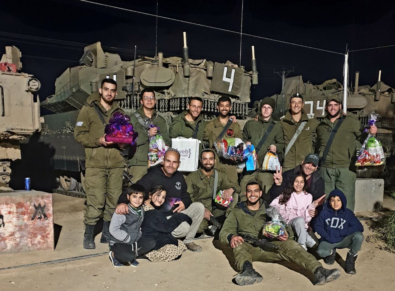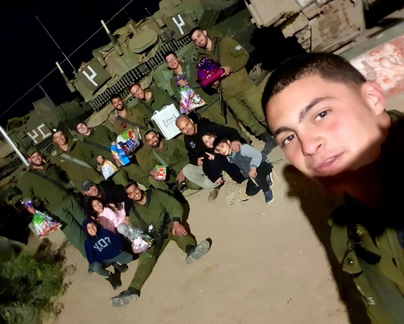קבוצת עושים טוב לקהילה של זיו נחמה ותלמידי אופקים בראשון לציון חלקו משלוחי מנות לחיילים המשרתים בגבול עזה