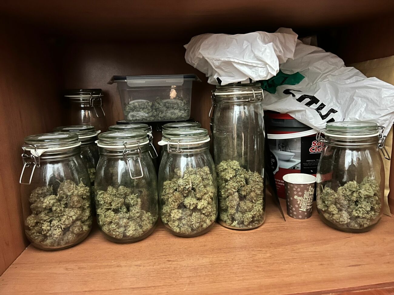 בחיפוש בבית, תפסו השוטרים 10 שתילים של סם מסוג קאנביס במשקל וכן צנצנות עם סם מוכן להפצה במשקל כולל של כ-3 ק"ג, מכשיר סלולרי ומשקל דיגיטלי וכן סכום של עשרות אלפי ש"ח בכסף מקומי וזר.