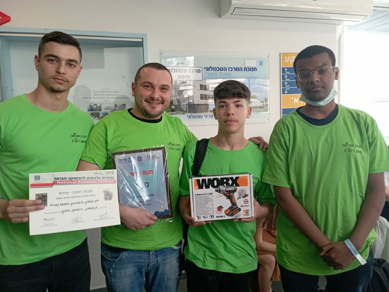 תלמידי תיכון נעמ"ת ראשון לציון: איתי הלפרין, ליאם כהן, כרובאל מקטה, ג'רדי זלוצקי ודימה בטץ זכו במקומות הראשונים בתחרות הלאומית לרובוטיקה והנדסה