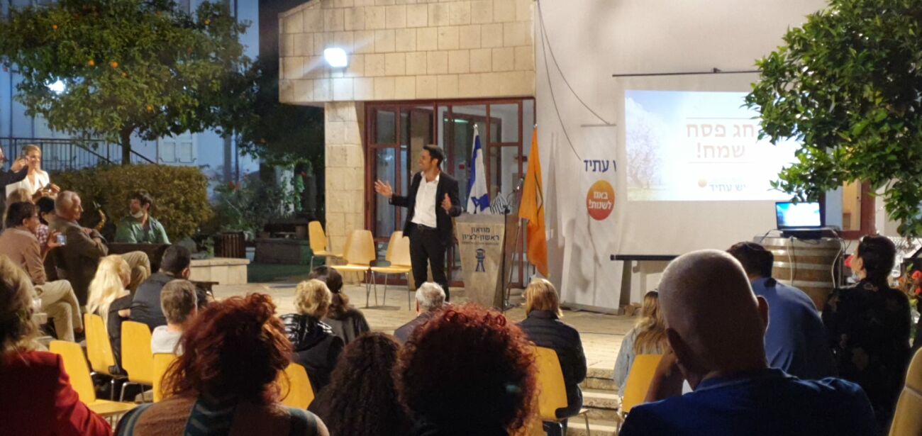 "הכוח של יש עתיד זה הפעילות והפעילים הנפלאים שלה. ומטה ראשון לציון התברך בפעילים ותומכים רבים. חשוב לנו בכל הזדמנות גם לעדכן אותם בעשייה שלנו וגם להודות להם. סגן ראש העירייה איתי מתיתיהו עושה המון למען העיר והתושבים והוא עושה זאת גם בשם הפעילים האלה. ויחד עם השרים וחברי הכנסת חשוב לנו להודות להם על התמיכה ולחגוג איתם את הפסח. אני רוצה לאחל לתושבי העיר ולעם ישראל חג שמח ושקט"