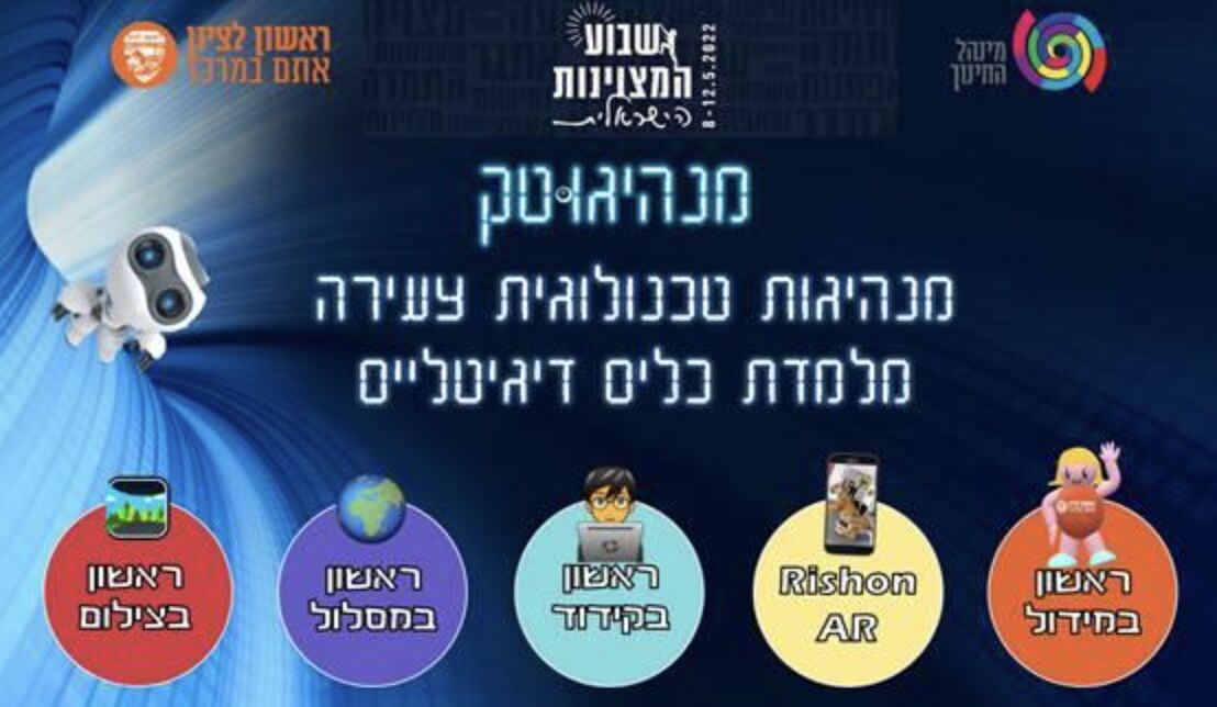 עיריית ראשון לציון מזמינה אתכם לפעילות במסגרת שבוע המצוינות הישראלית: בפעילות יעבירו תלמידי מנהיגוטק - התכנית למנהיגות טכנולוגית צעירה בבתי הספר היסודיים - סדנאות חווייתיות להורים וילדים, בהן הם ילמדו כיצד להכין מודל תלת ממדי, לצלם צילומי מציאות רבודה ומציאות מדומה (AR / VR), ליצור אנימציה בסביבת התכנות סקראץ' ולבנות מסלול טיול על גבי מפת גוגל (לבעלי חשבון גוגל).